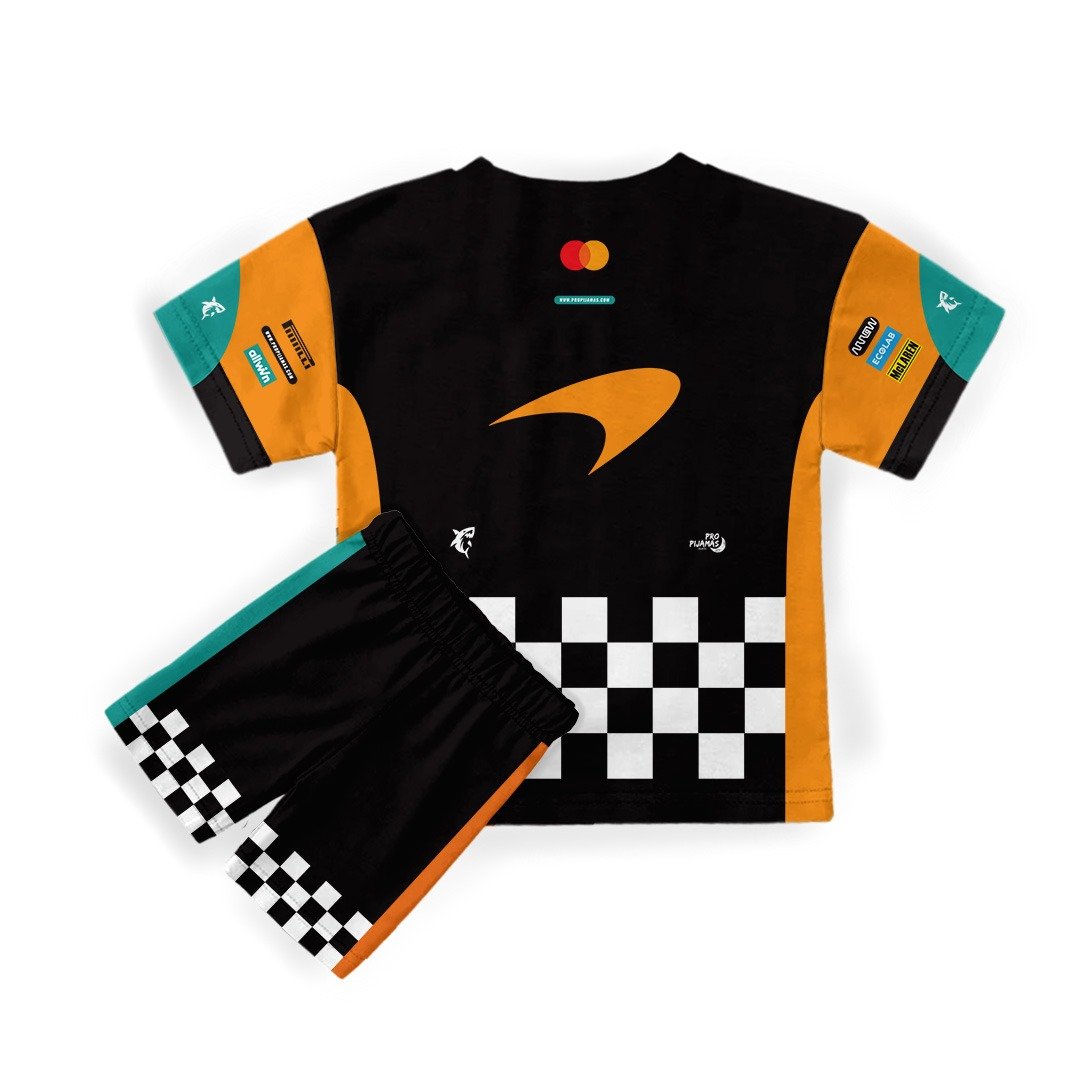¡Prepárate para soñar a toda velocidad! Llega la nueva pijama de verano short y manga corta, inspirada en McLaren, el equipo sensación de esta temporada en la Fórmula 1. Con los colores de los autos que están haciendo historia y el estilo de Norris y Piastri, es perfecta para los pequeños fans que quieren dormir como campeones y despertar listos para la carrera.